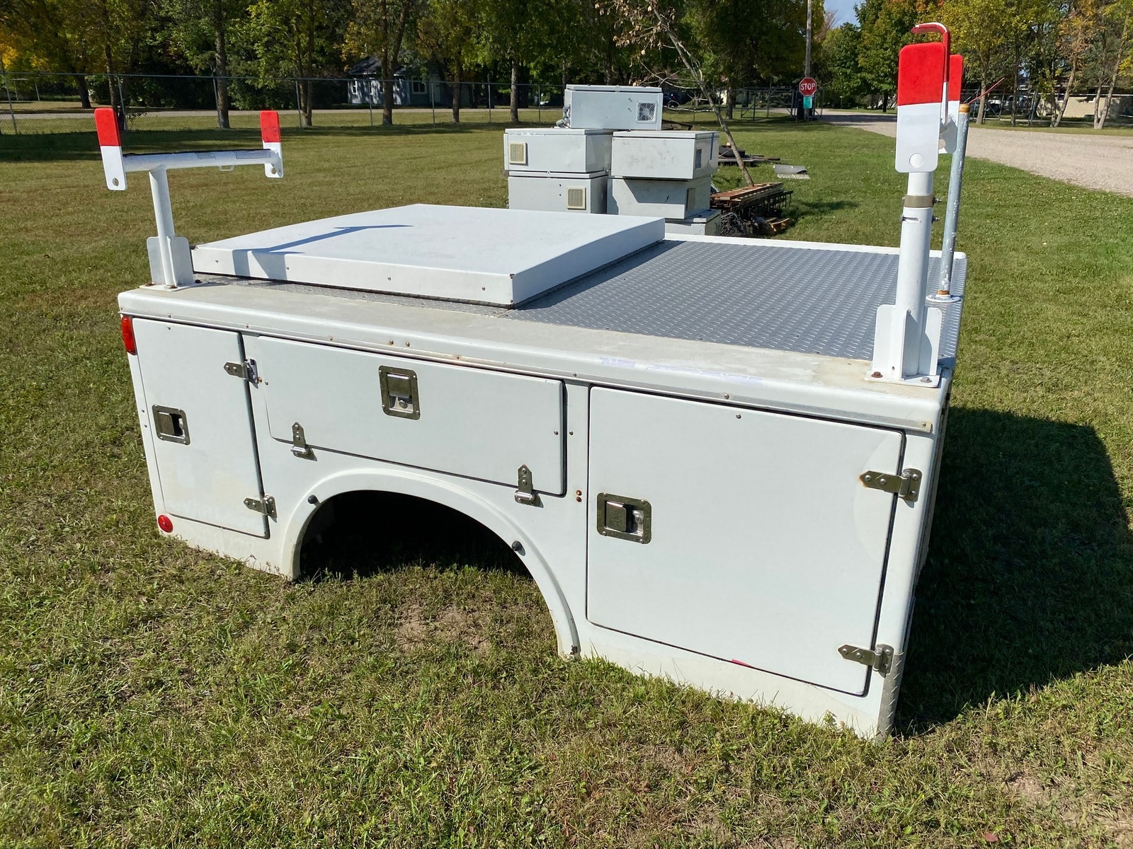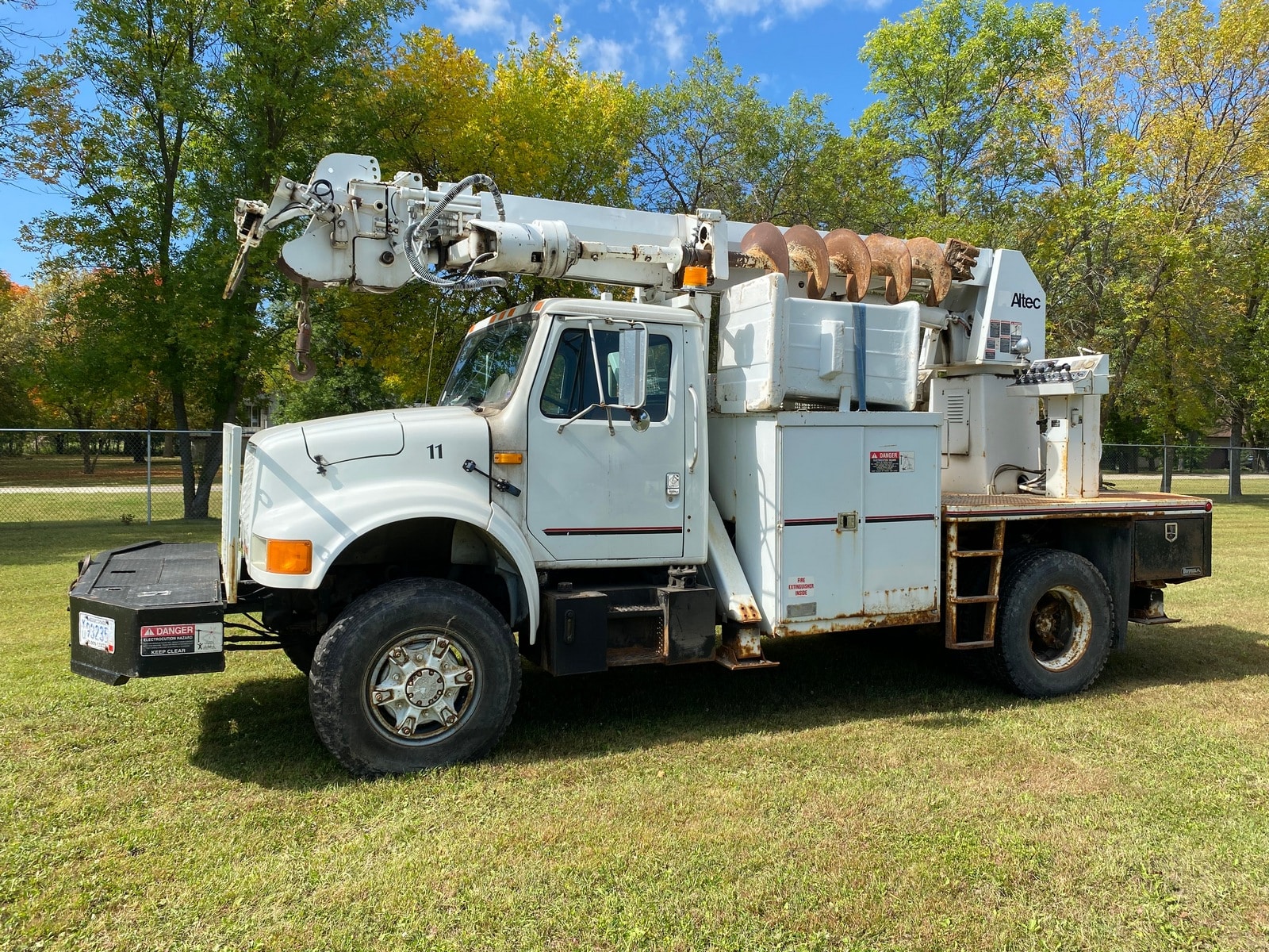 Items to Include: 1991 IH 4800 4×4, Single Axle, 11R22.5 Tires, PTO, Diesel, 6 Speed Manual, w/Altec 42ft. Bucket & 10ft. x 20in. Post Hole Auger, 4 Stingers, Winch, 139,143 Miles, 2015 Dodge Ram 2500HD 5.7L V8 Hemi, Auto, 4×4, Reg. Cab, Knapheide 8ft. Metal Service Box, 189,465 Miles, 7ft. Skid steer Mount Sweeper w/Bucket, 8ft. Fiberglass Pickup Service Box, 2-New Ram 8ft. Pickup Boxes, 1-New Chevy 8ft. Pickup Box, Insulated Garage Doors, JD 828D Snow Blower, Dewalt DWE7491 10in. Table Saw, Dewalt 20v Push Mower, Knaack Job Box on Wheels, Bell/Gassett 175GPM Water Pump, Metal Cabinet, Desks, Office Chairs, Office Equipment, Plus More.