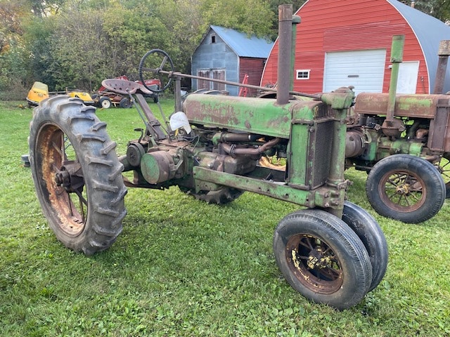 Items to Include: 1930 Ford Model A Pickup 4 cyl. Flathead, Manual, Good Shape, 2003 GMC Sierra 1500 Ext. Cab, V8, Auto, 4×4, Only 43,290 Miles One Owner, 2001 John Deere 5410 MFWD, 2,712 Hours, CAH, Diesel, 3pt., 3 Hyd. Remotes, w/JD 541 Loader & Bucket, IH B w/Woods L59 Belly Mower, 1951 IH WD9 Standard Diesel, 1938 John Deere B NF Gas, 1935 John Deere B NF Brass Tag, 1934 John Deere D Gas, Snow Plane w/Airplane engine, 2-Lund Alum Boats, 3-Stationary Engines, 3-Large Windmills, 6ft. Pull Type Rotary Mower, Antique Equipment, Wood Wheel Running Gears, Shop Equipment, Hand & Power Tools, Various Model A Parts & Engines, Antiques & Collectibles, Plus Many More Items.