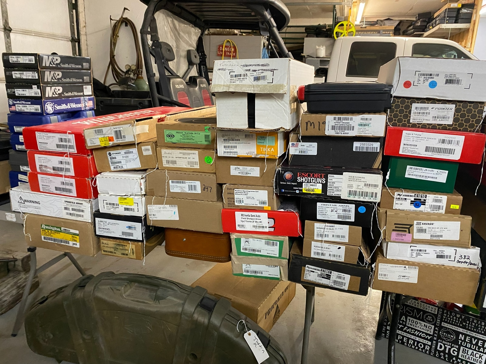 Items to Include: 375+ Guns, Archery, Lots of Ammo, Reloading Supplies, Scopes, Gun Cases, Holsters, Brass, Gun Safes, Plus More Hunting Related Items.